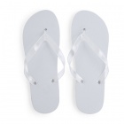Plażowe klapki wyposażone w komfortową podeszwę z PE oraz przezroczyste paski wykonane z PVC.
