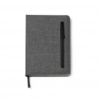 Zeszyt A5, okładka wykonana z tkaniny RPET. Zewnętrzna kieszeń zapinana na zamek błyskawiczny. W zestawie zakładka. 80 kartek w linie.