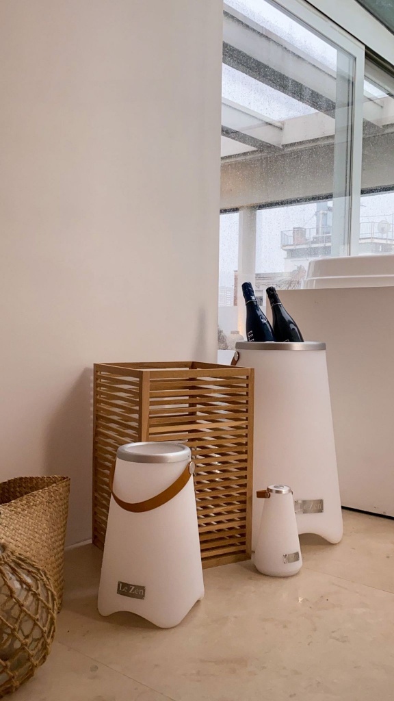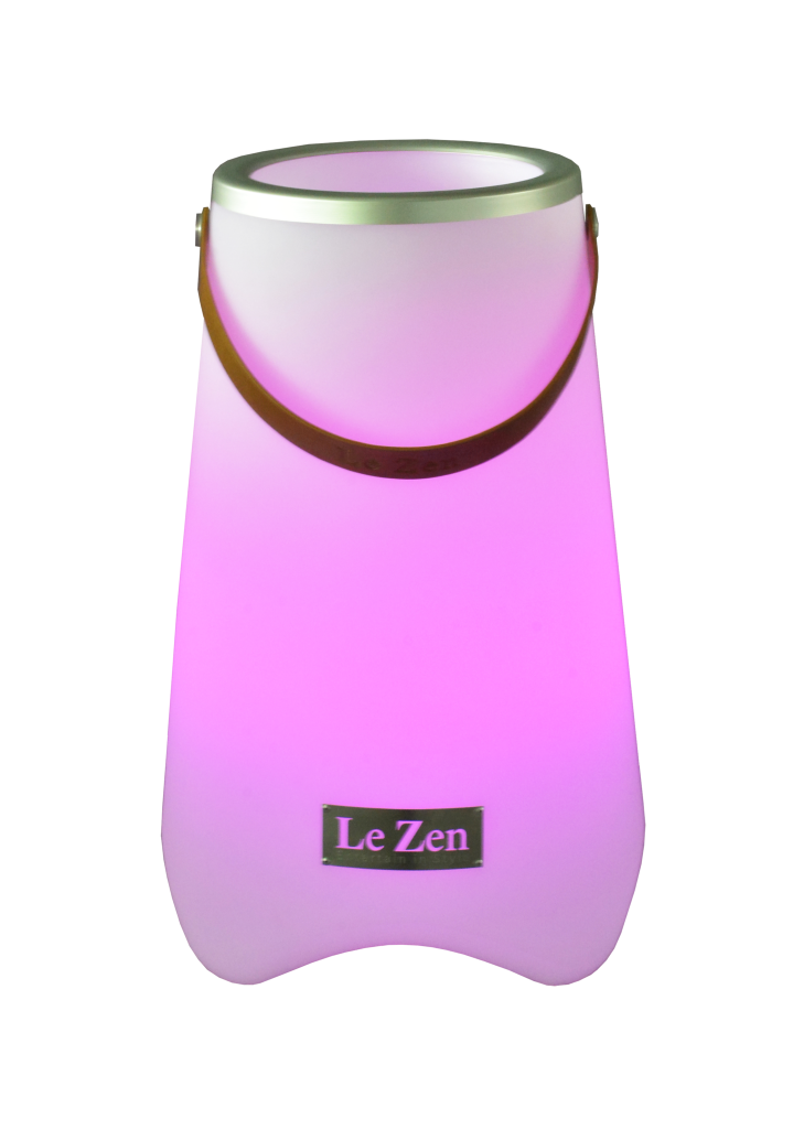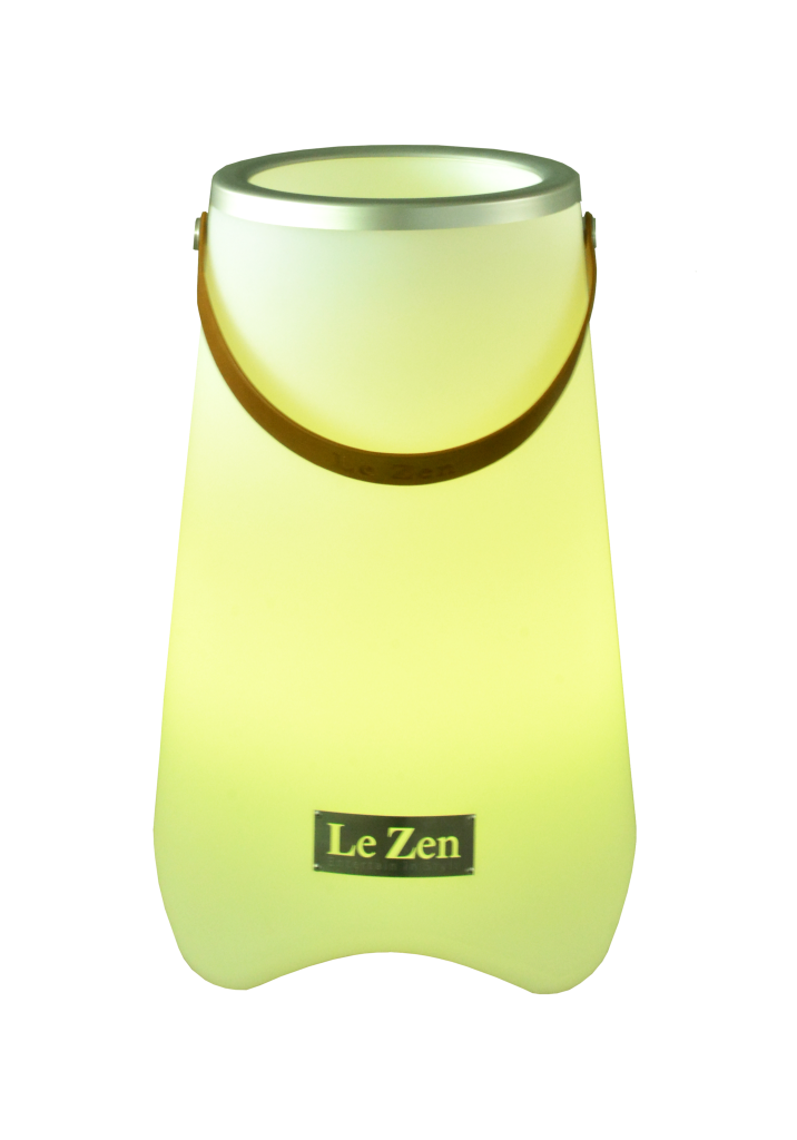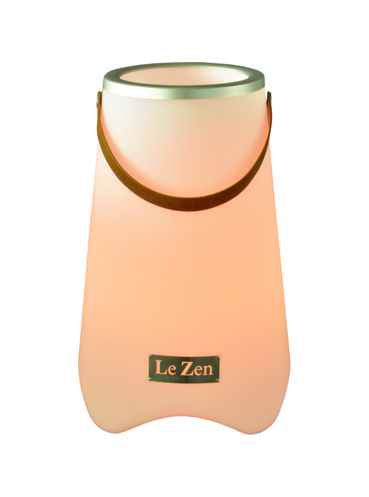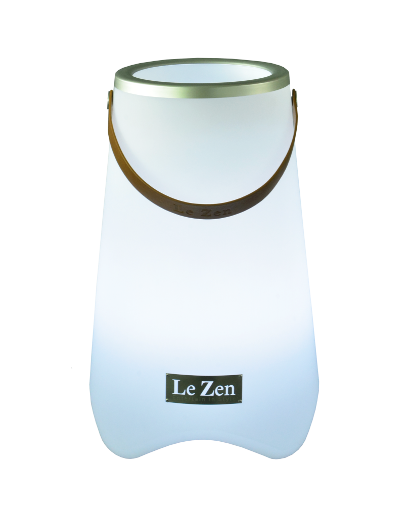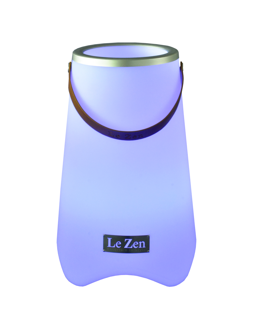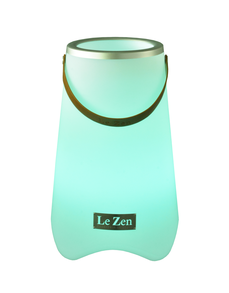 Le Zen to wielofunkcyjne urządzenie łączące kolorową lampę LED, głośnik Bluetooth oraz chłodziarkę do wina (lub doniczkę na rośliny). Model Le Zen M pomieści do 2 standardowych butelek wina, szampana lub likieru i wyposażony jest w głośnik Bluetooth o mocy 10 W. Urządzenie oferuje nastrojowe oświetlenie w 7 kolorach oraz 3 tryby efektów: migające, zanikające i synchronizowane z muzyką. W zestawie znajduje się bezprzewodowy pilot zdalnego sterowania. Stopień ochrony IP44, a polimerowa bateria litowo-jonowa 4000 mAh zapewnia do 5 godzin odtwarzania. Le Zen jest wodoodporny, odporny na wstrząsy, bezprzewodowy i łatwy do przenoszenia — idealny na imprezy, rejsy, pikniki, ogniska na plaży oraz jako elegancka dekoracja do domu czy baru.