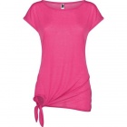 T-shirt z krótkim rękawem i szerokim dekoltem. Charakterystyczny detal: wiązanie na boku.