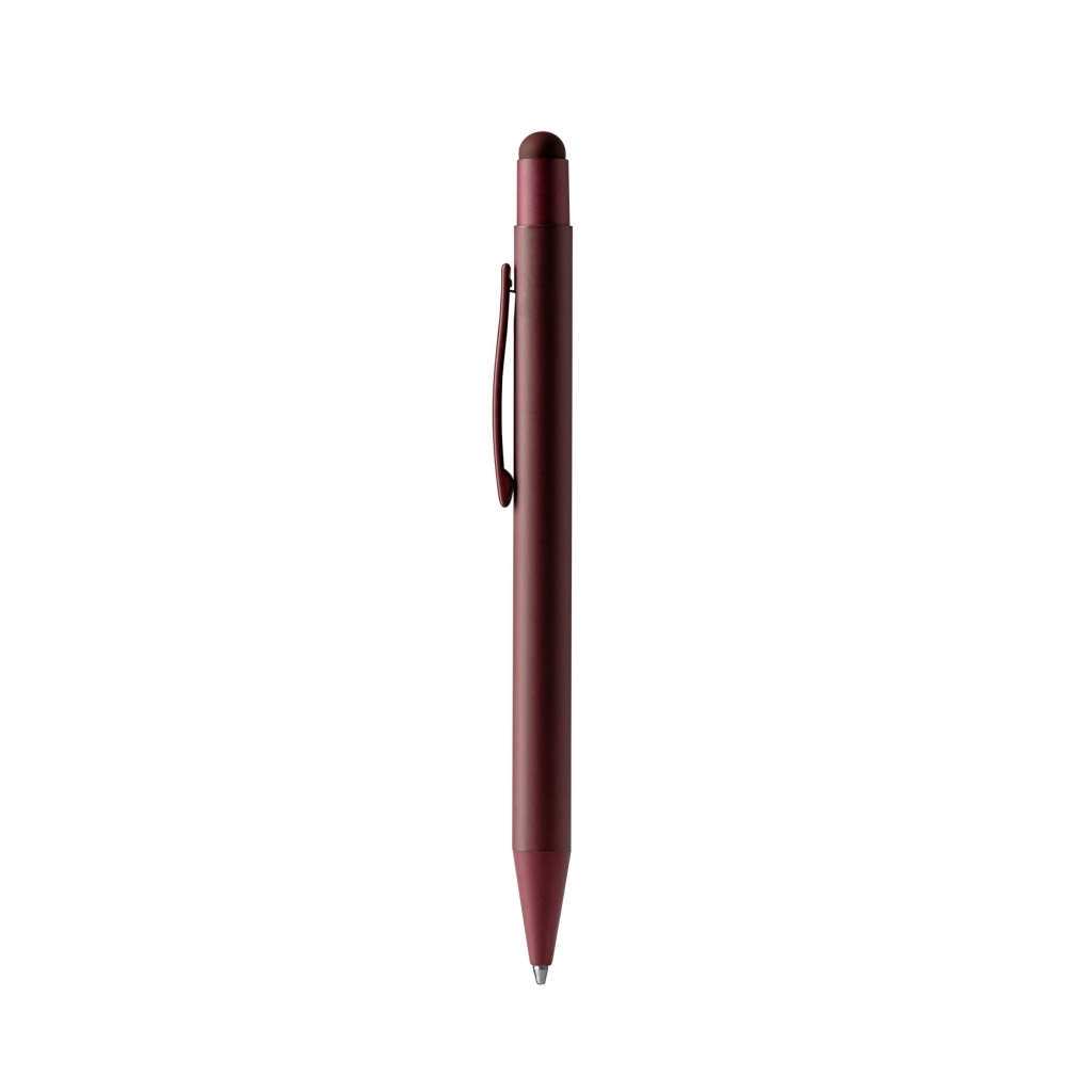 Metalowy długopis z eleganckim matowym wykończeniem dopasowanym do rysika. Wkład Jumbo w kolorze niebieskim. Dostępny w różnych kolorach.