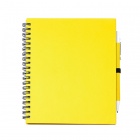 Spiralny notatnik z gładkimi kartkami, twardą okładką i praktycznym uchwytem na długopis.