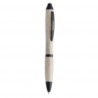 Długopis z mechanizmem obrotowym wykonany z włókna pszenicznego. Czarniejsze elementy wykonane z polipropylenu. Wyposażony w miękką, silikonową końcówkę do ekranów dotykowych. Wkład w kolorze niebieskim.