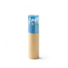 Zestaw 6 drewnianych ołówków zapakowanych w kartonowe pudełko z recyklingu, z półprzezroczystym, kolorowym kapturkiem wyposażonym w temperówkę — praktyczne i ekologiczne rozwiązanie do szkicowania i notowania. Dostępne w różnych kolorach.
