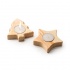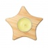Świeca na drewnianej podstawce z motywem świątecznym (gwiazdka i choinka).