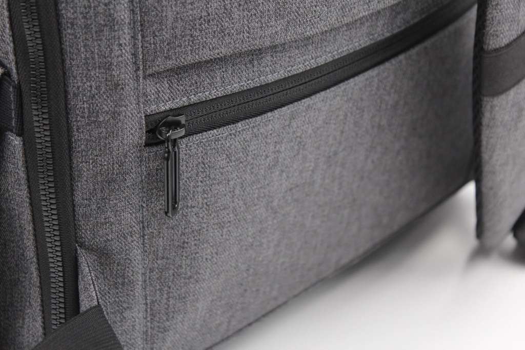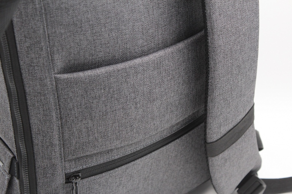 Marco Polo wyposażony jest w liczne ukryte kieszenie, kieszeń antykradzieżową, pasek ułatwiający przewożenie razem z walizką, odblaskowe detale, przegródkę na laptopa 15,6 oraz zewnętrzny port USB do ładowania telefonu podczas podróży. Wykonany z materiału odpornego na wodę i kurz, po rozpakowaniu rozkłada się na płasko, co ułatwia jego przechowywanie.