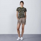 T-shirt z krótkim rękawem w stylu moro. Zaokrąglony kołnierzyk. Czterowarstwowy ściągacz, wzmocnione kryte szwy na karku i ramionach. Szwy boczne.