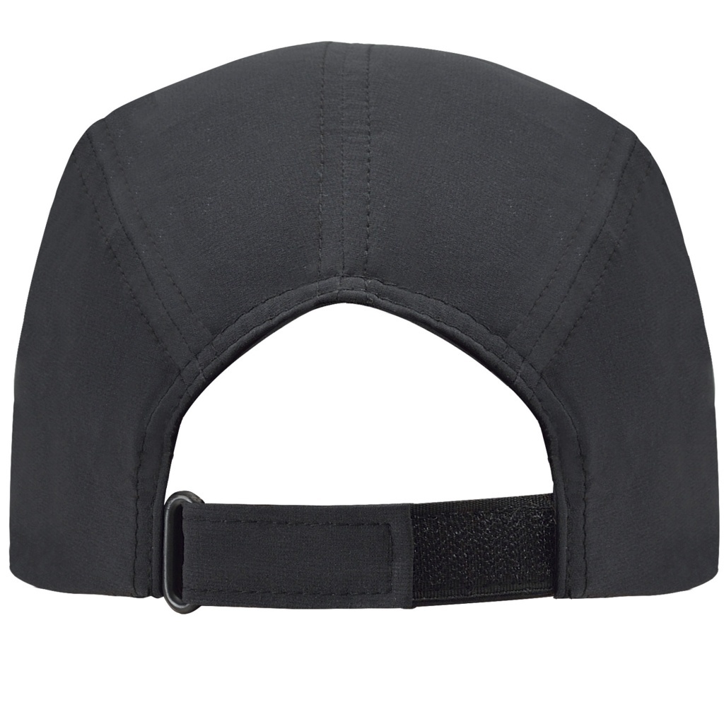 Techniczna czapka z daszkiem, 3 panele. Lekka i oddychająca tkanina. Tylne regulowane zapięcie na rzep. Przednia część czapki przeznaczona do nadruku.
