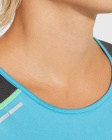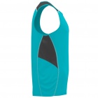 Koszulka techniczna na ramiączka wzbogacona o elementy odblaskowe. Posiada okrągły kołnierzyk oraz wzmocnione, kryte szwy na karku. Trójkolorowy model wykonany z dwóch materiałów poliestrowych: główna tkanina interlock oraz boczne i górne panele z mikroperforowanej tkaniny. Model szybkoschnący i łatwy w pielęgnacji.