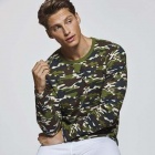Koszulka z długim rękawem w stylu moro z zaokrąglonym kołnierzykiem.