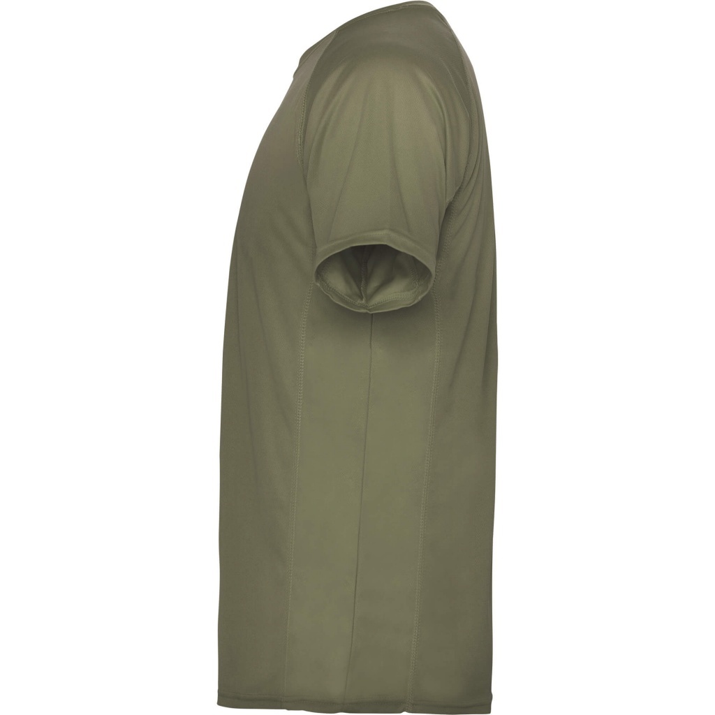 Koszulka techniczna z krótkim raglanowym rękawem. Boczne przeszycia wykończone nitką w kolorze tkaniny. Oddychająca tkanina, łatwa w praniu i suszeniu.