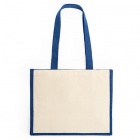 Praktyczna i stylowa torba wykonana z laminowanej juty, wyposażona w długie uchwyty oraz boczne panele z bawełny — świetna na co dzień i doskonała do znakowania.