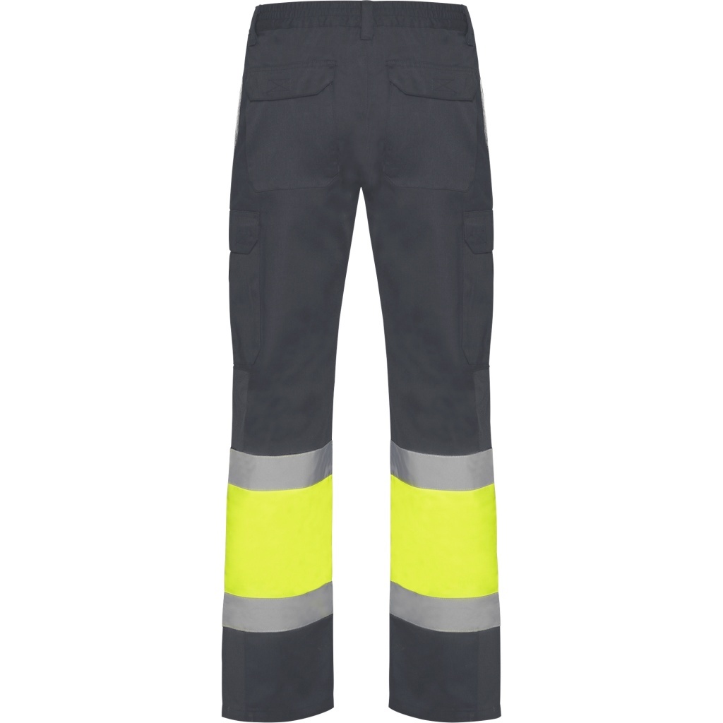 4. Dwukolorowe spodnie wykończone odblaskowymi pasami.