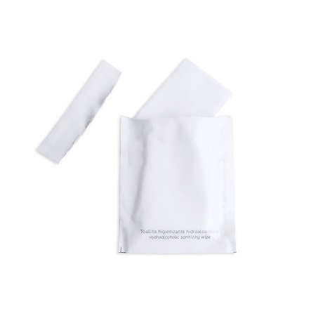 Jednorazowa, kompostowalna chusteczka dezynfekująca do rąk i niewielkich powierzchni, nasączona roztworem wodno‑alkoholowym. Zawiera 70% alkoholu, co zapewnia skuteczną i szybką dezynfekcję. Kompaktowy rozmiar sprawia, że chusteczka jest wygodna do noszenia, np. w torebce.