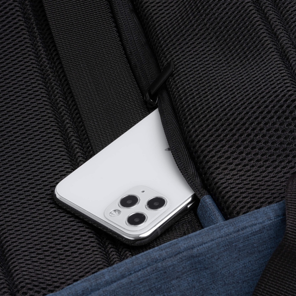 Plecak antykradzieżowy wykonany z tkaniny RPET 300 D to bezpieczna i ekologiczna propozycja na co dzień i w podróży. Ergonomiczna konstrukcja z wyściełanymi szelkami i tylną częścią zapewnia komfort noszenia przez cały dzień. Dwie główne, wyściełane komory chronią laptopa o przekątnej 15 cali oraz tablet, a dodatkowa wyściełana kieszeń z przodu i kieszeń na uchwycie ułatwiają organizację drobnych przedmiotów. Plecak wyposażono także w wyściełaną kieszeń antykradzieżową z tyłu oraz praktyczny pasek do mocowania, pozwalający łatwo przymocować go do bagażu podręcznego. Wykonanie z tkaniny RPET pochodzącej z recyklingu podkreśla dbałość o środowisko.