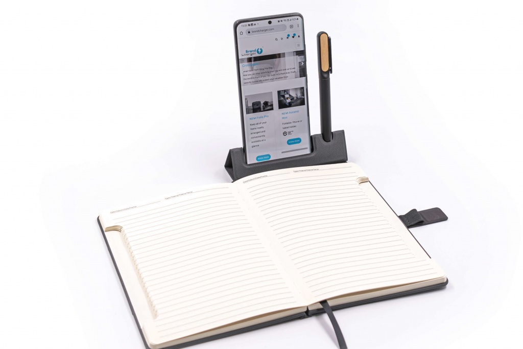 • NOTY DELUXE - Notatnik A5 z długopisem i stojakiem do telefonu