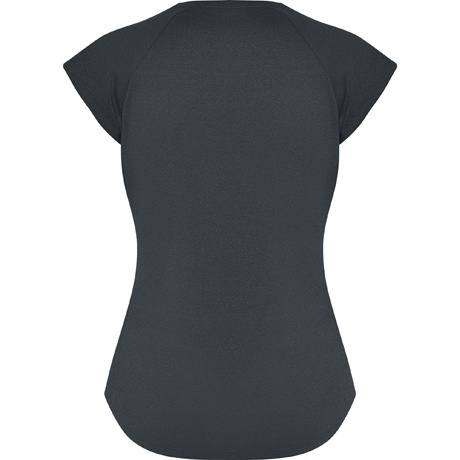 Koszulka sportowa damska z krótkim rękawem w stylu raglanowym.
