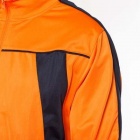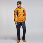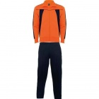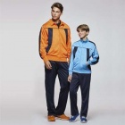 Dres z kontrastowymi wstawkami na bluzie. Bluza z prostymi rękawami, dwiema bocznymi kieszeniami. Ściągacz przy mankietach i w pasie. Prosty krój spodni z dwiema kieszeniami bocznymi. Elastyczny, regulowany taśmą ściągacz w pasie.