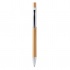 Długopis o korpusie i przycisku z bambusa, z miękko wykończonymi, kolorowymi detalami. Metalowa końcówka i klips. Atrament w kolorze niebieskim.