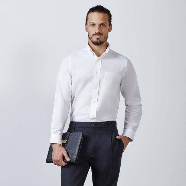 Model OXFORD — praktyczna koszula robocza, sprawdzająca się w biurze, hotelu, restauracji oraz w służbie zdrowia. Doskonała zarówno pod nadruk, jak i pod haft.