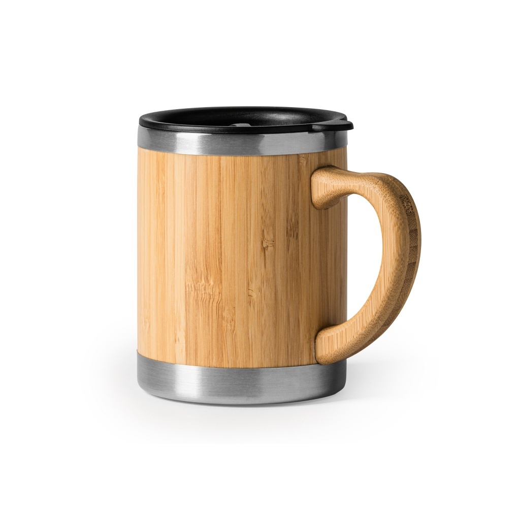Kubek o podwójnych ściankach ze stali nierdzewnej, z zewnętrzną powłoką z naturalnego bambusa. Wyposażony w dozującą pokrywkę. Pojemność 340 ml.