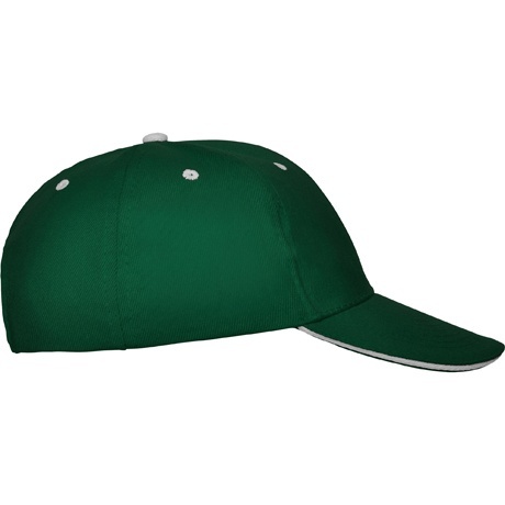 Czapka z daszkiem, konstrukcja sześciopanelowa. Sześć kolorowych, haftowanych otworów wentylacyjnych oraz sześć przeszyć na daszku. Wewnętrzna opaska przeciwpotna. Zapięcie na rzep.