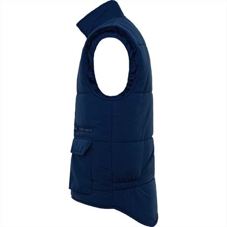 Dwustronna kamizelka z wieloma kieszeniami i wysokim kołnierzem, widoczna z daleka.