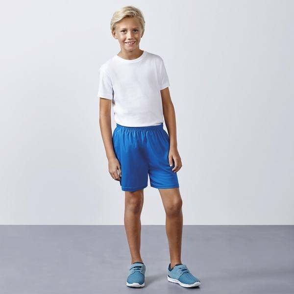 Spodenki sportowe z elastycznym ściągaczem w pasie i regulowanym sznurkiem. Uszyte z oddychającej tkaniny typu pika, łatwe w praniu i szybkoschnące.