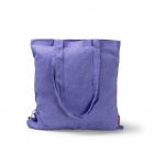 Składana torba wykonana z bawełny z recyklingu o gramaturze 120 g/m², wyposażona w paski o długości 70 cm oraz sznurek do ściągania.