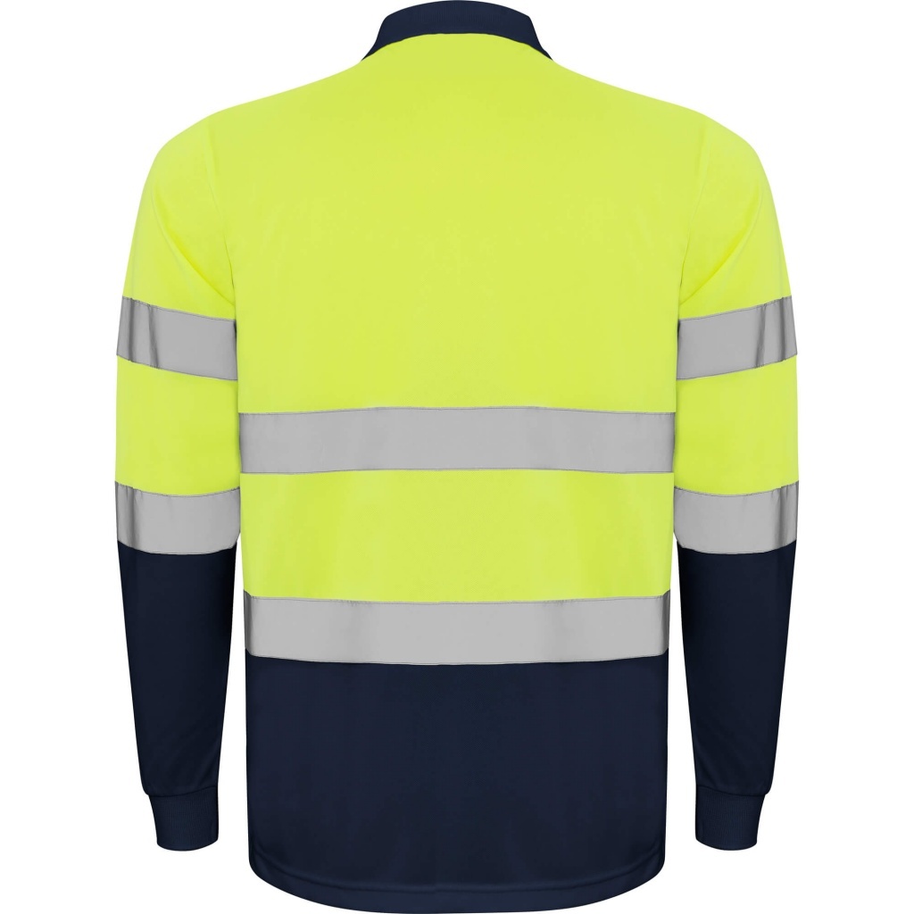 Wysokiej widoczności, techniczna koszulka polo z długim rękawem, zaprojektowana z myślą o bezpieczeństwie i komforcie podczas pracy.