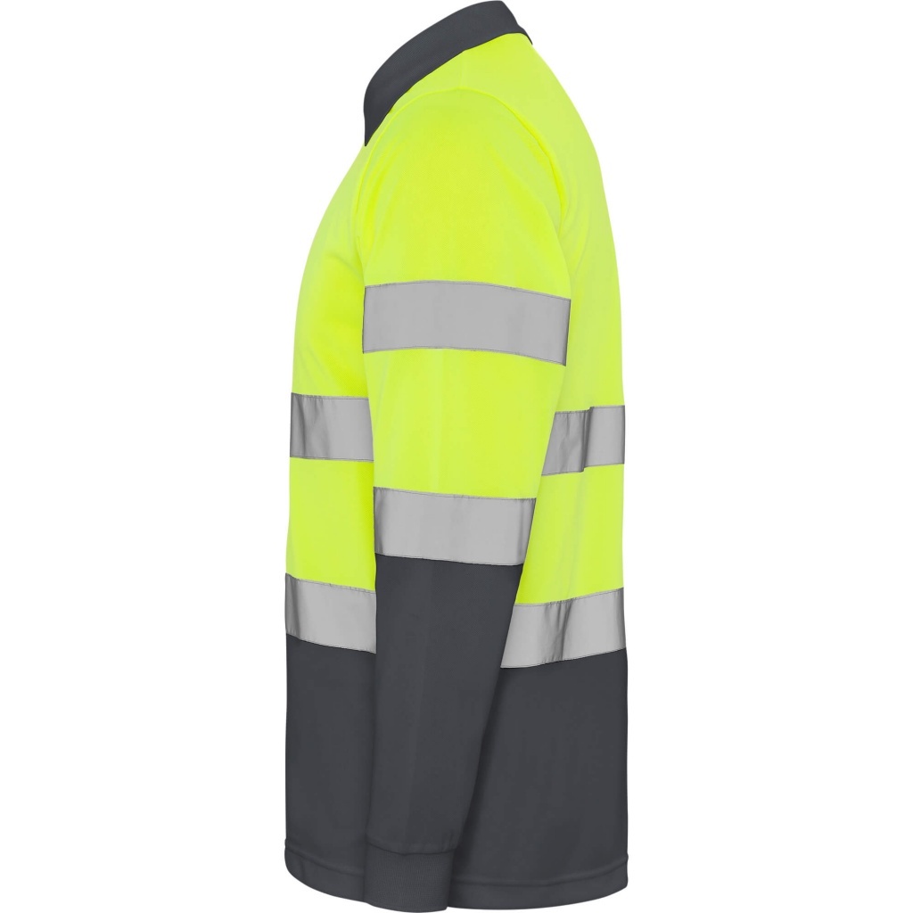 Wysokiej widoczności, techniczna koszulka polo z długim rękawem, zaprojektowana z myślą o bezpieczeństwie i komforcie podczas pracy.