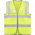 Kamizelka odblaskowa o wysokiej widoczności, zapinana na centralny zamek błyskawiczny.