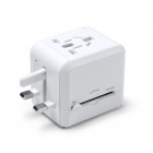 Uniwersalny adapter podróżny. Dwa porty wyjściowe USB i jeden USB typu C. Dopuszczony do użytkowania w Europie, Azji, Wielkiej Brytanii, USA i Australii. Zapakowany w białym pudełku.