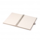 Zeszyt w formacie A5 wykonany z kartonów po mleku pochodzących z recyklingu. Posiada twardą okładkę oraz 70 gładkich kartek z tego samego materiału. Produkt zapakowany jest w tekturowe etui.