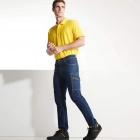 Dżinsowe spodnie z wieloma kieszeniami.