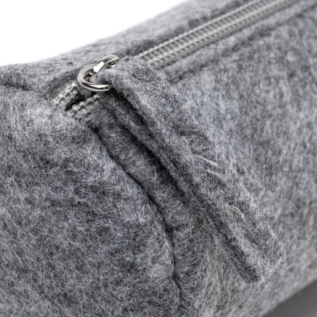 Piórnik z filcu pochodzącego z recyklingu, zamykany na zamek błyskawiczny.