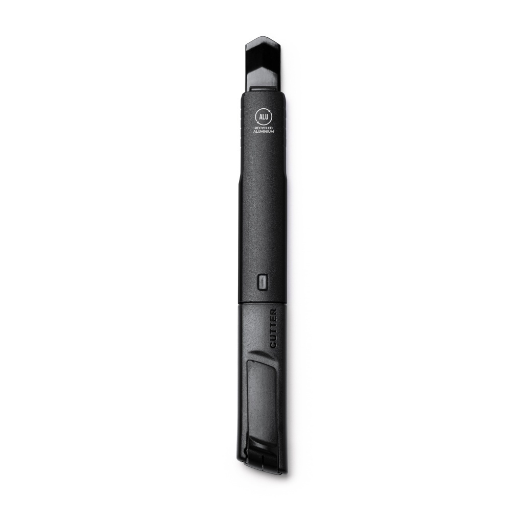 Nóż z ostrzem ze stali nierdzewnej oraz korpusem z aluminium pozyskanego w procesie recyklingu. Wyjmowana osłona umożliwiająca cięcie i regulację ostrza. Produkt zapakowany w opakowanie zaprojektowane z myślą o ochronie środowiska.