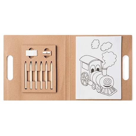 Kompletny zestaw do rysowania dla dzieci, wyposażony w praktyczny uchwyt do przenoszenia.