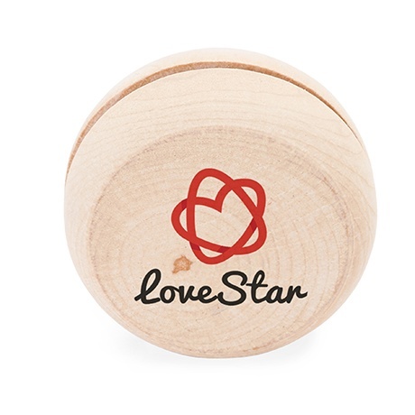 Jo-jo drewniane z białym sznurkiem o długości 75 cm.