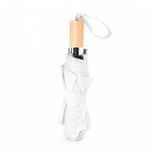 Składany parasol z dopasowanym pokrowcem. Trzcina, żebra i końce mają kolor czarny. Rękojeść wykonana z naturalnego drewna. Zamykanie na rzep, otwieranie ręczne.