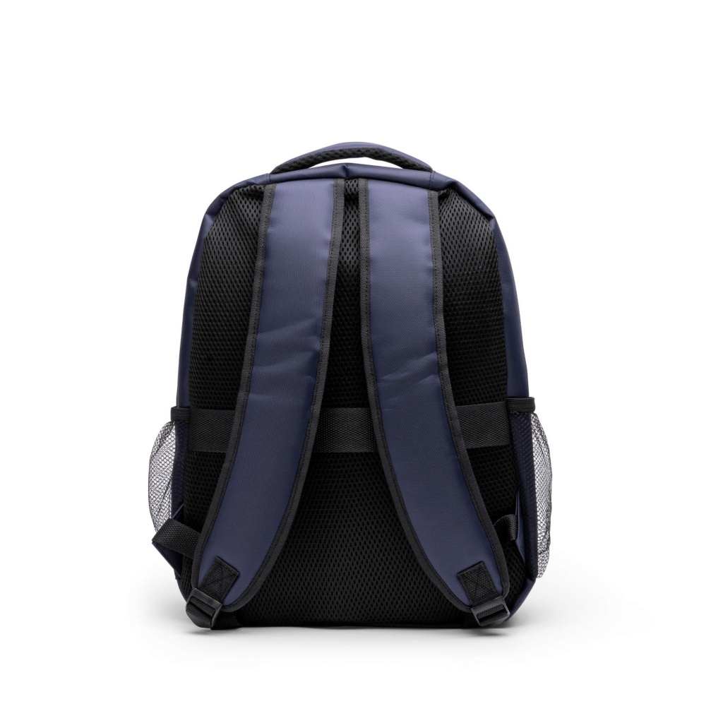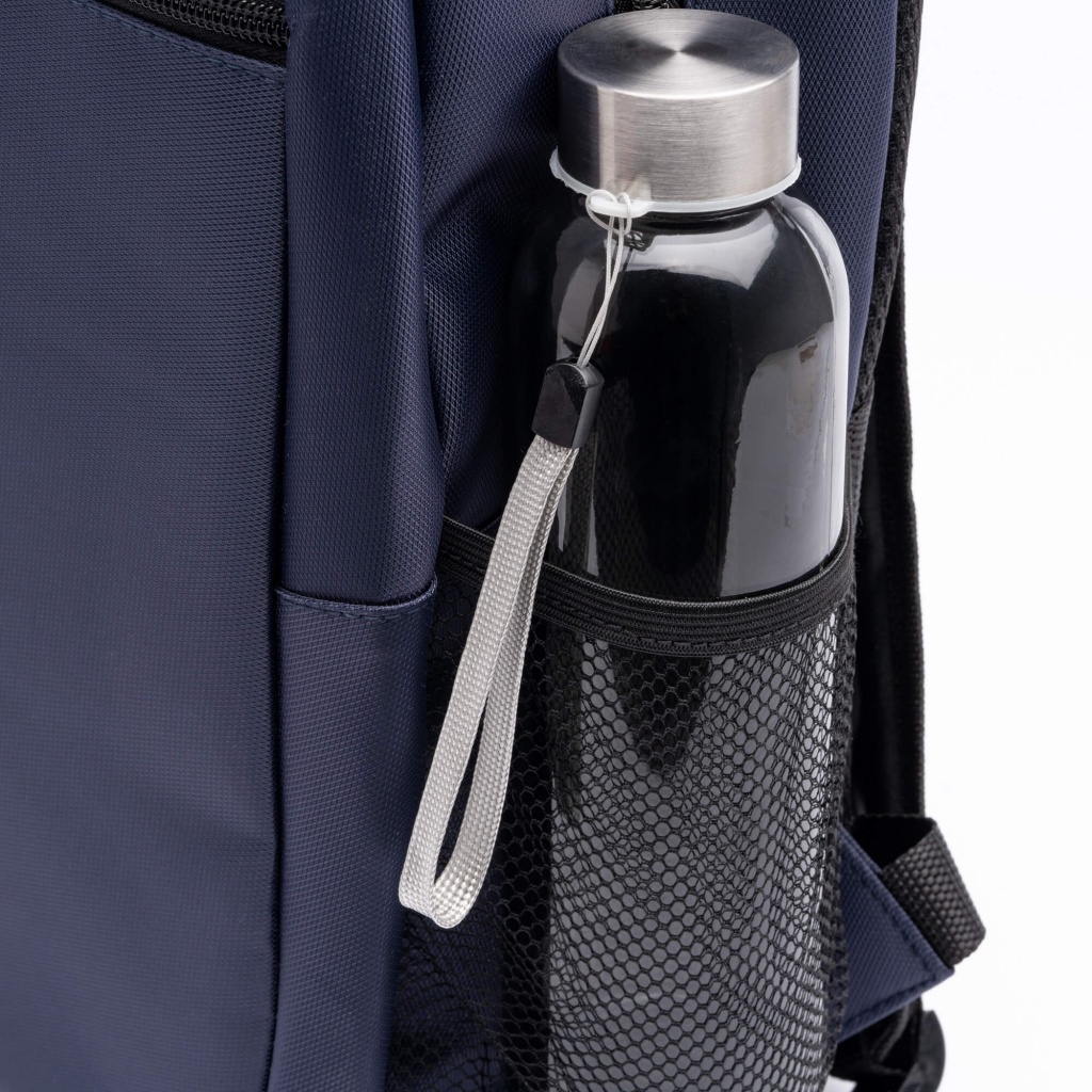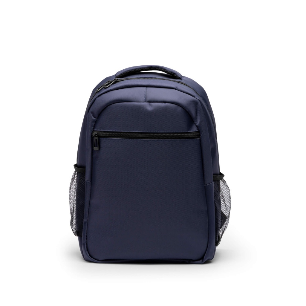 Plecak Executive wykonany z nylonu z recyklingu. Posiada pojemną główną komorę oraz wyściełaną kieszeń na laptopa o przekątnej 15 cali. Wyposażony w jedną kieszeń zewnętrzną i dwie boczne, wyściełane plecy i szelki oraz pasek do mocowania.