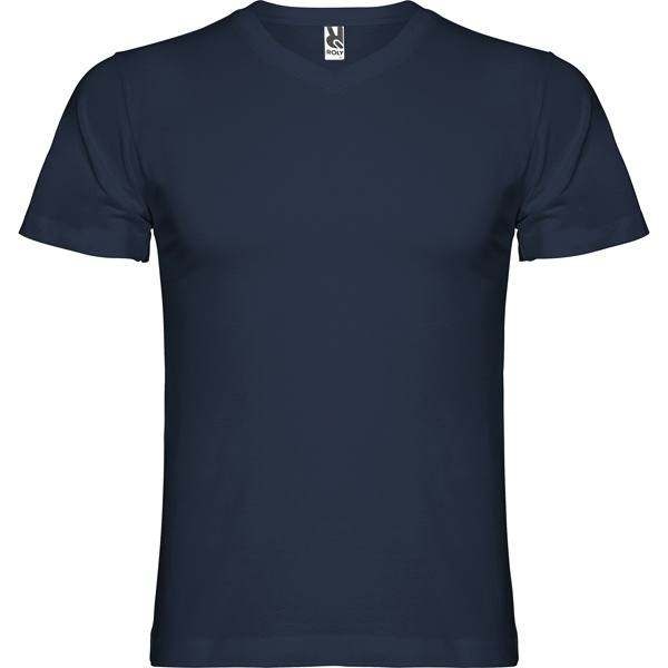 T-shirt z krótkim rękawem. Dekolt w szpic. Czterowarstwowy ściągacz przy szyi, wzmocnione, kryte szwy przy kołnierzyku i na ramionach. Szwy boczne.