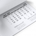 Przezroczysta powierzchnia pozwala na podgląd odpowiadającego arkusza z kalendarzem dla bieżącego miesiąca. Podkładka jest podnoszona, aby uzyskać dostęp do arkuszy na 12 miesięcy. Kalendarz jest w języku hiszpańskim i angielskim. Czarna antypoślizgowa podstawa zapewnia wygodne korzystanie z funkcji podkładki pod mysz komputerową.