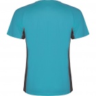 Dwukolorowa koszulka techniczna z krótkimi raglanowymi rękawami. Panele boczne i pachy wykonane z mikroperforowanej tkaniny. Okrągły dekolt wykończony wzmocnionymi, krytymi szwami. Przyjemna w dotyku tkanina o dopasowanym kroju.