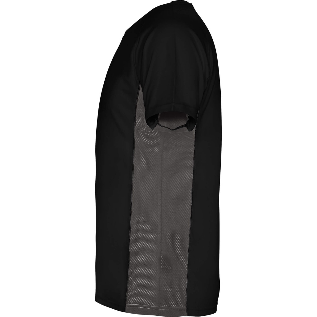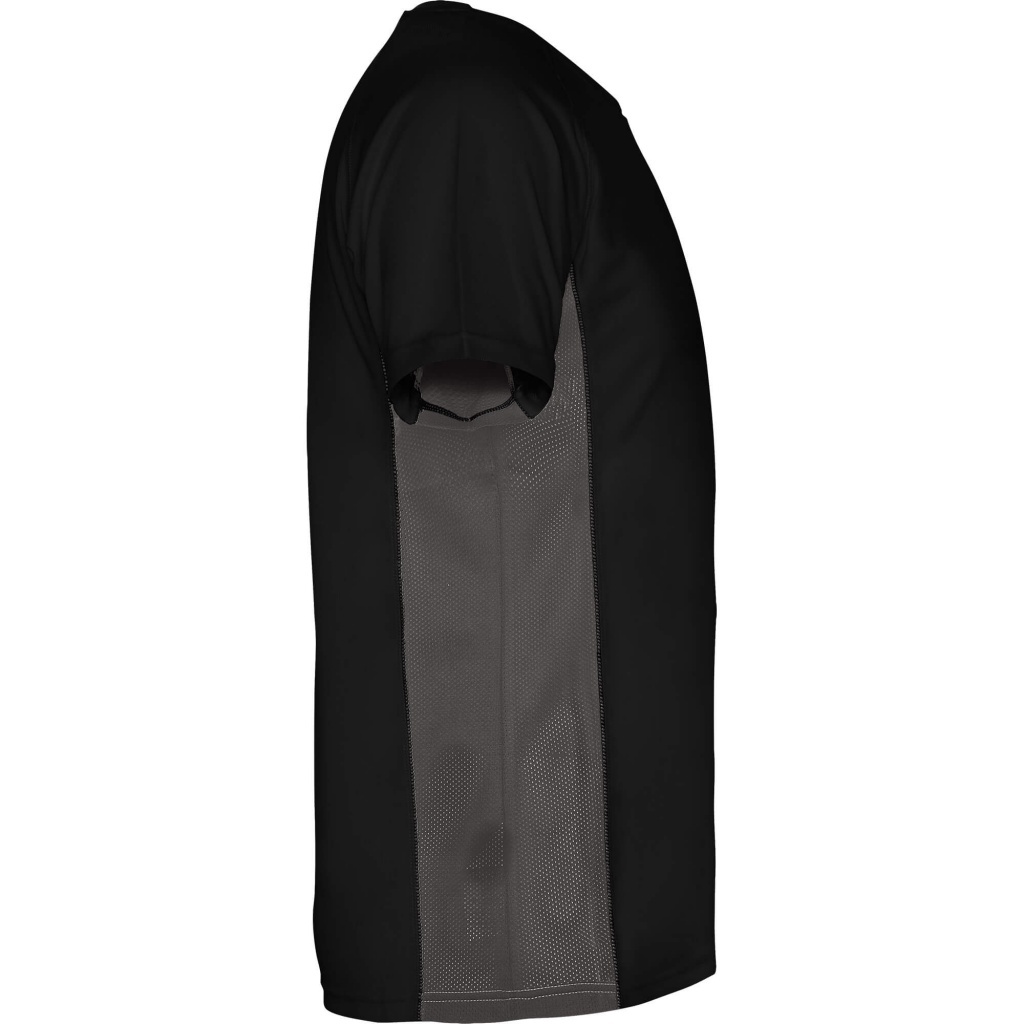 Dwukolorowa koszulka techniczna z krótkimi raglanowymi rękawami. Panele boczne i pachy wykonane z mikroperforowanej tkaniny. Okrągły dekolt wykończony wzmocnionymi, krytymi szwami. Przyjemna w dotyku tkanina o dopasowanym kroju.