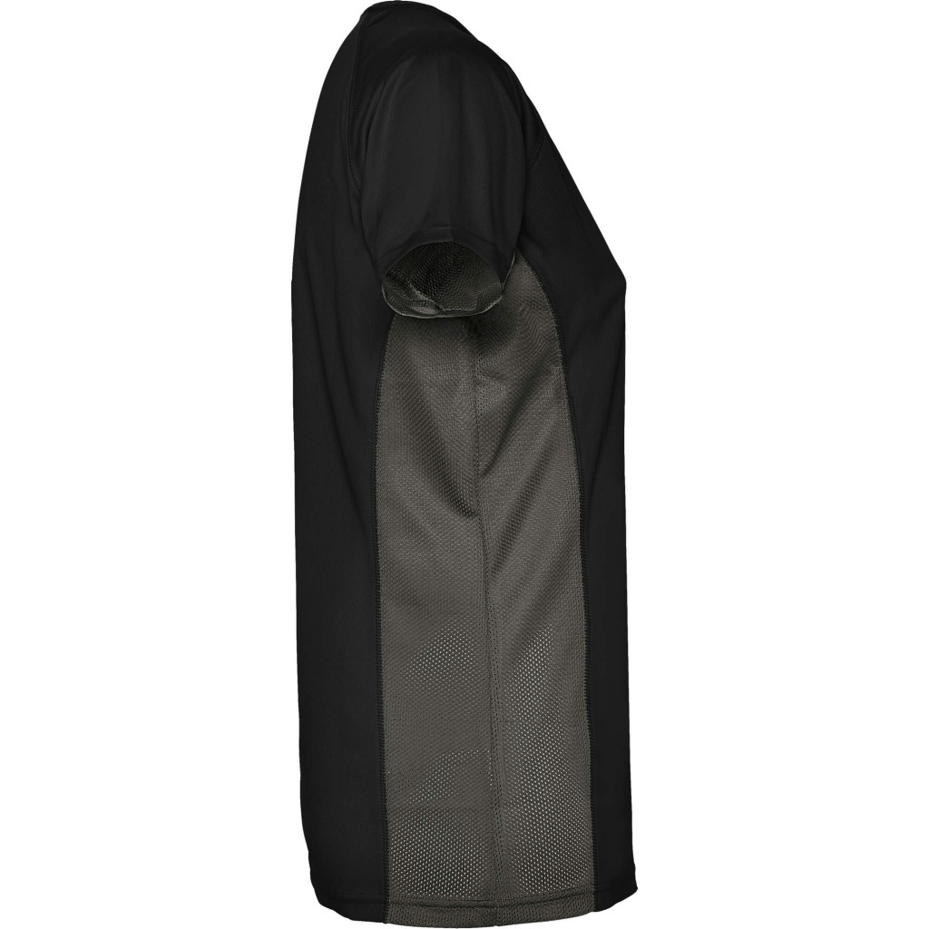 Dwukolorowa koszulka techniczna z krótkimi raglanowymi rękawami. Panele boczne i pachy wykonane z mikroperforowanej tkaniny. Okrągły dekolt wykończony wzmocnionymi krytymi szwami. Materiał przyjemny w dotyku, o dopasowanym kroju.