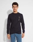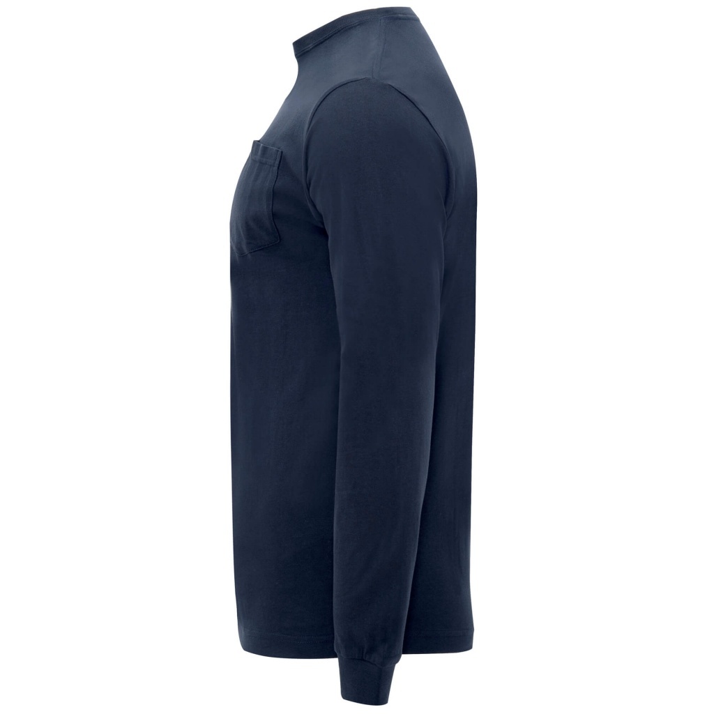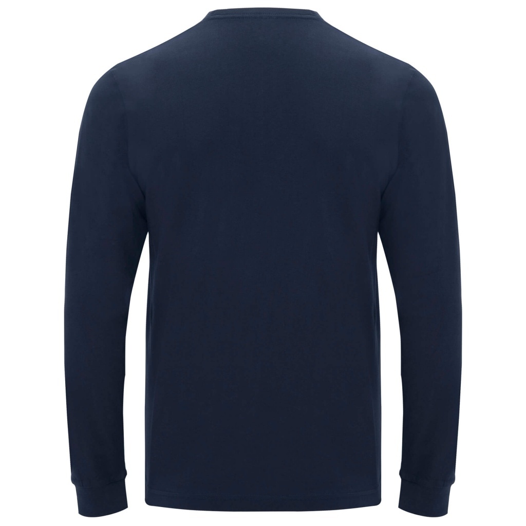 Koszulka z długim rękawem. Czterowarstwowy ściągacz przy szyi wykończony lamówką 1x1. Mankiety przy rękawach. Wzmocnione, kryte szwy na karku i ramionach. Kieszeń na lewej piersi.