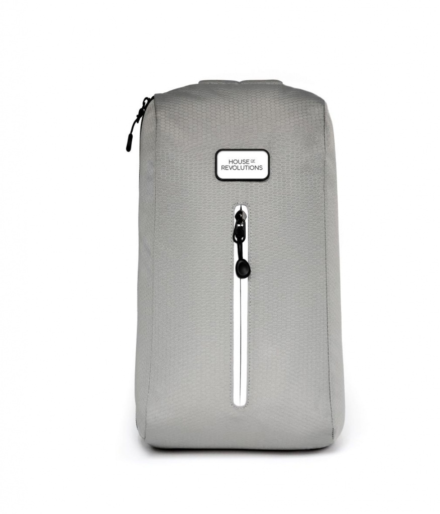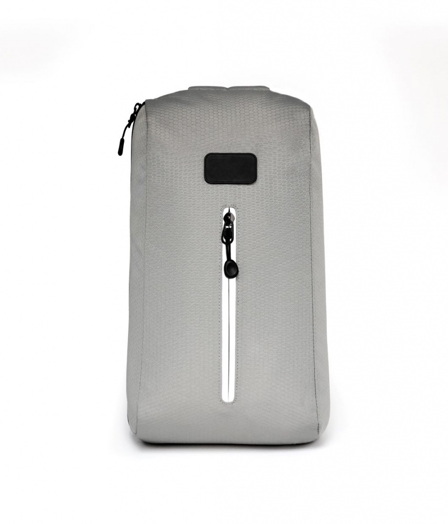 Konstrukcja wykonana jest w całości z butelek PET z recyklingu i ma ergonomiczną sylwetkę zawieszoną na oddychającym pasku z siatki oraz praktyczną kieszenią na telefon lub butelkę z wodą.