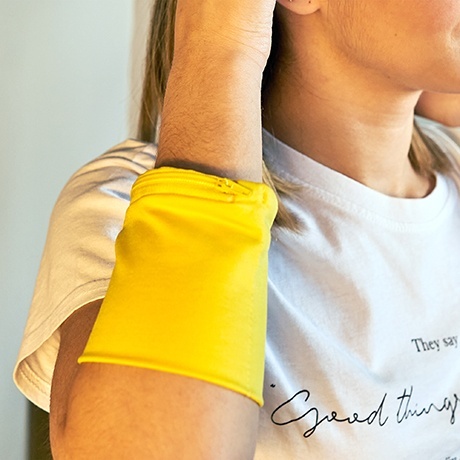 Elastyczna opaska na nadgarstek wyposażona w kieszonkę zapinaną na suwak.