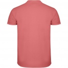 Koszulka polo z krótkim rękawem. Wzmocnione, kryte szwy przy kołnierzyku. Prążkowany kołnierzyk i mankiety. Szwy boczne. Zapięcie na trzy guziczki. Rozcięcia po bokach.